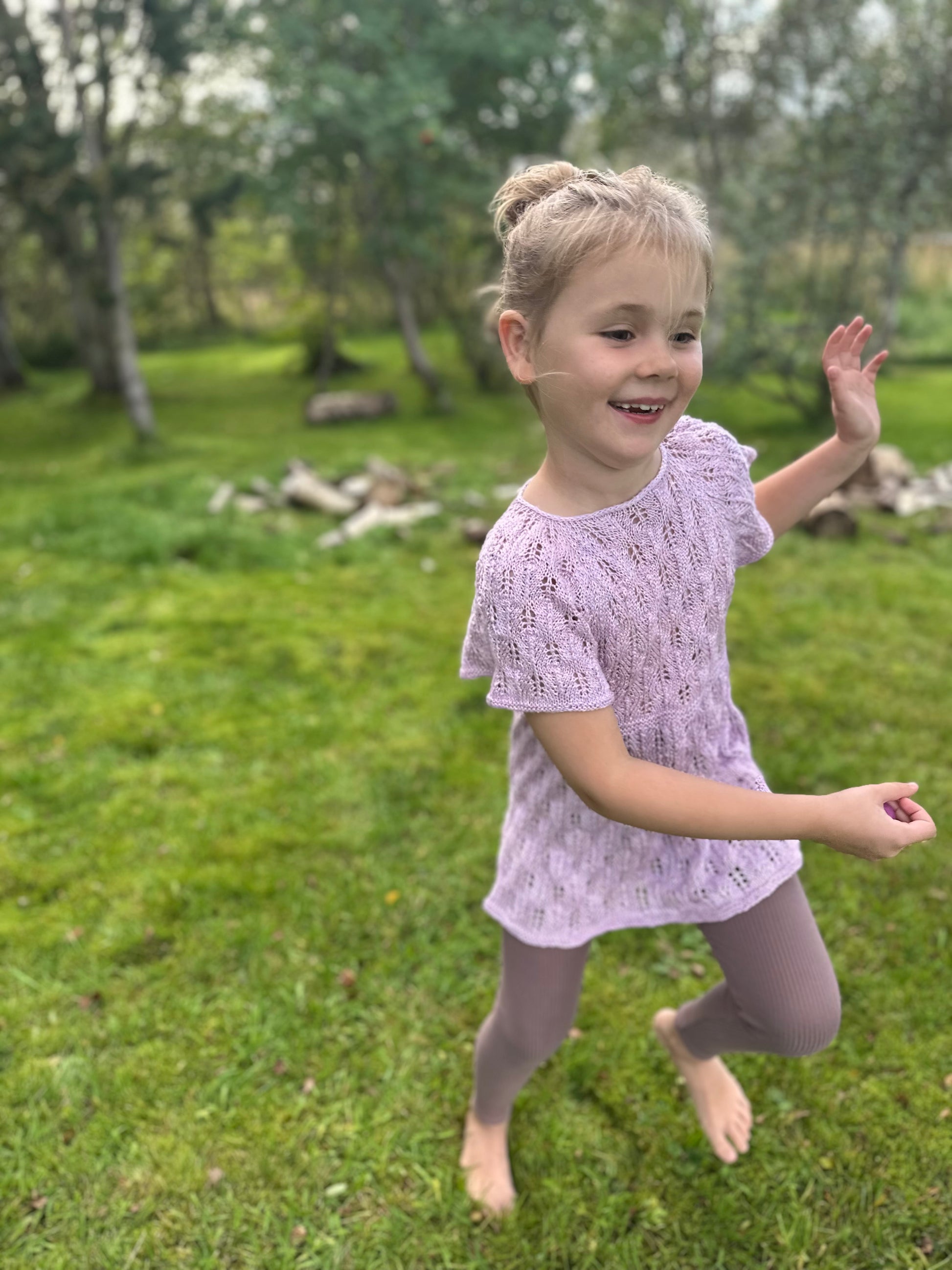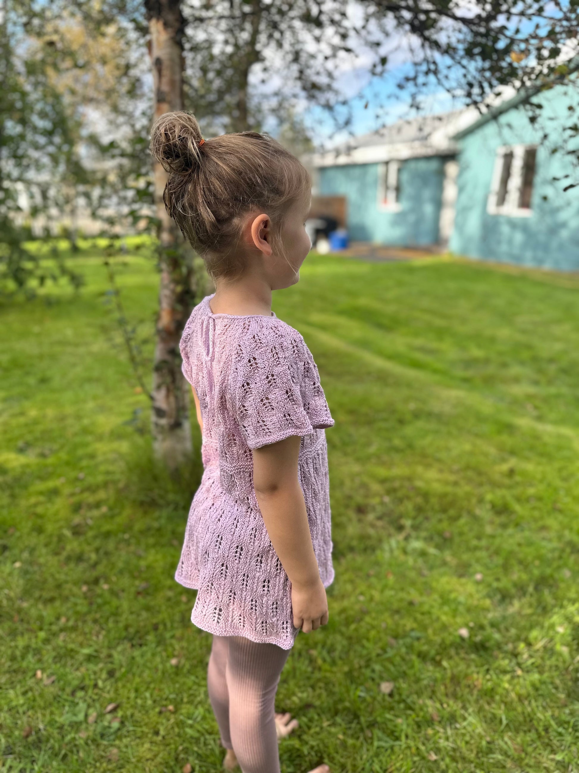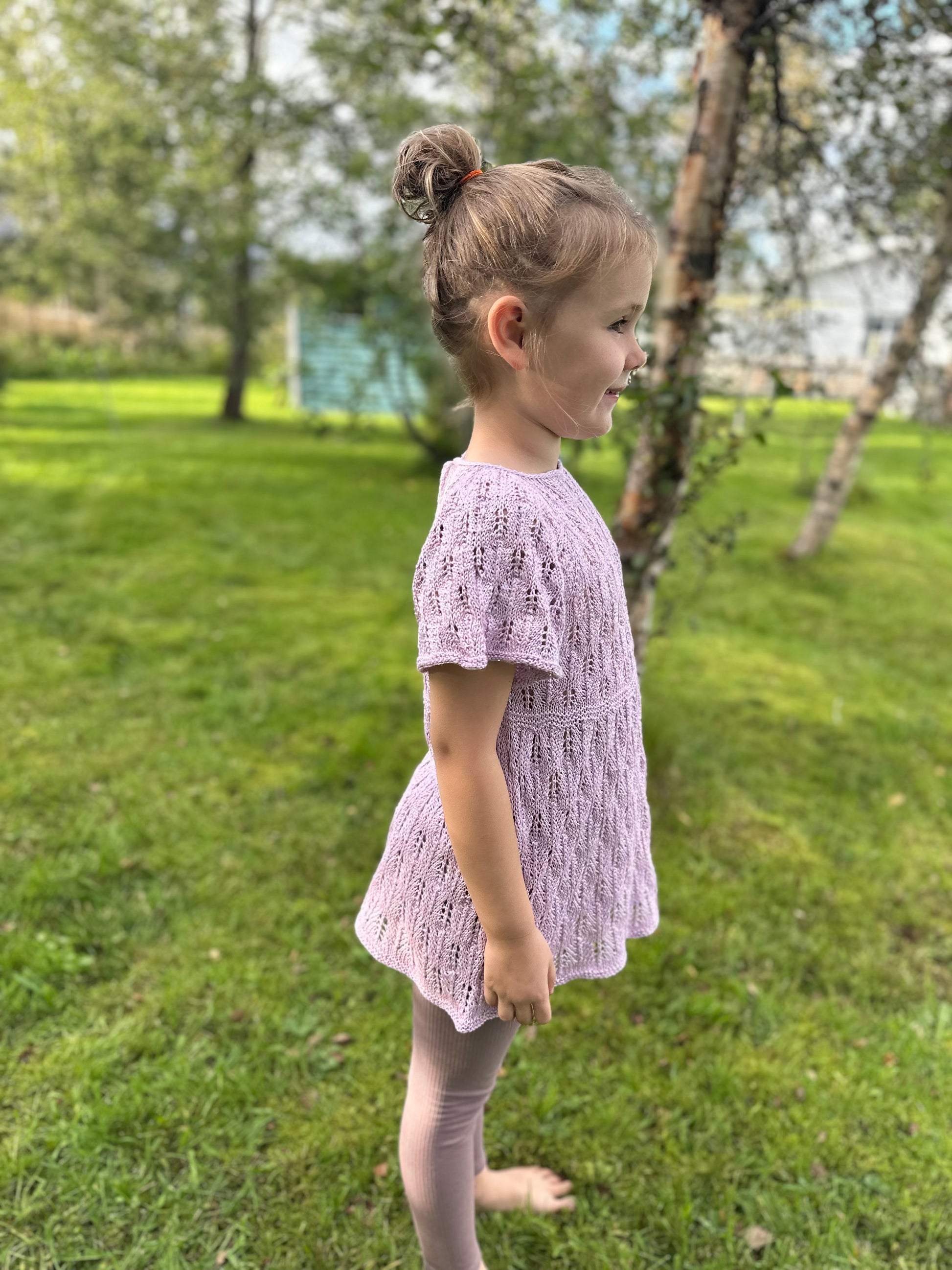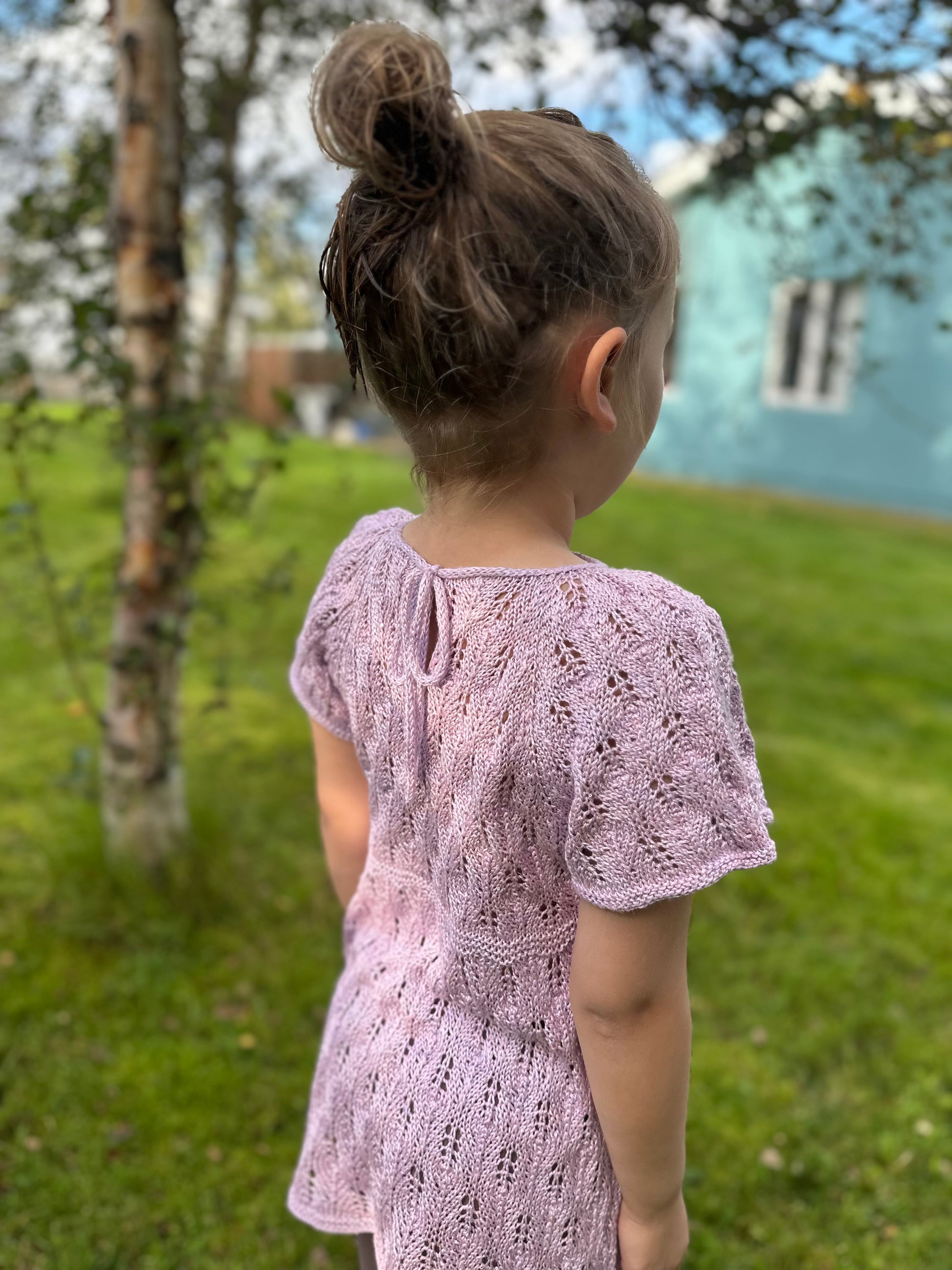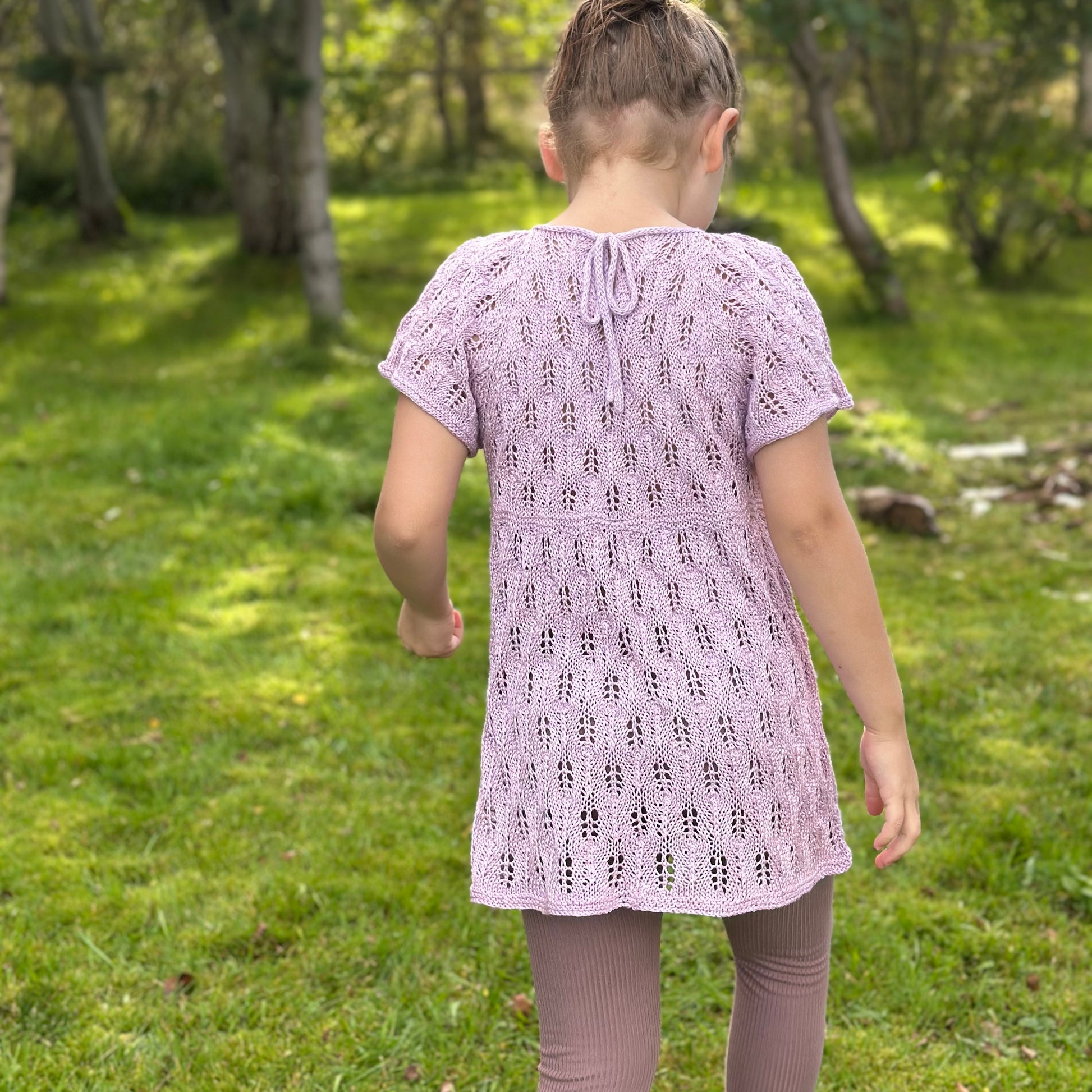 Kjóllinn er prjónaður ofan frá og niður. Fyrsta skrefið við að prjóna kjólinn, er að prjóna snúruna í hálsmálinu. Kjóllinn er prjónaður fram og til baka á meðan klaufin í hálsmálinu er að myndast. Síðan er berustykkið tengt saman og prjónað í hring eftir það. Mismunandi prjónfesta er á stærðum, það er til þess að stökkið á milli stærða sé ekki jafn stórt. Þannig eru stærðir 3 – 6 mánaða, 1 - 2 ára, 4 ára og 8 ára með prjónfestuna 25/10 á 3 mm prjóna, stærðir 6 – 12 mánaða, 2 - 3 ára, 6 ára og 10 ára með prjónfestu 23/10 á 3.5 mm prjóna.