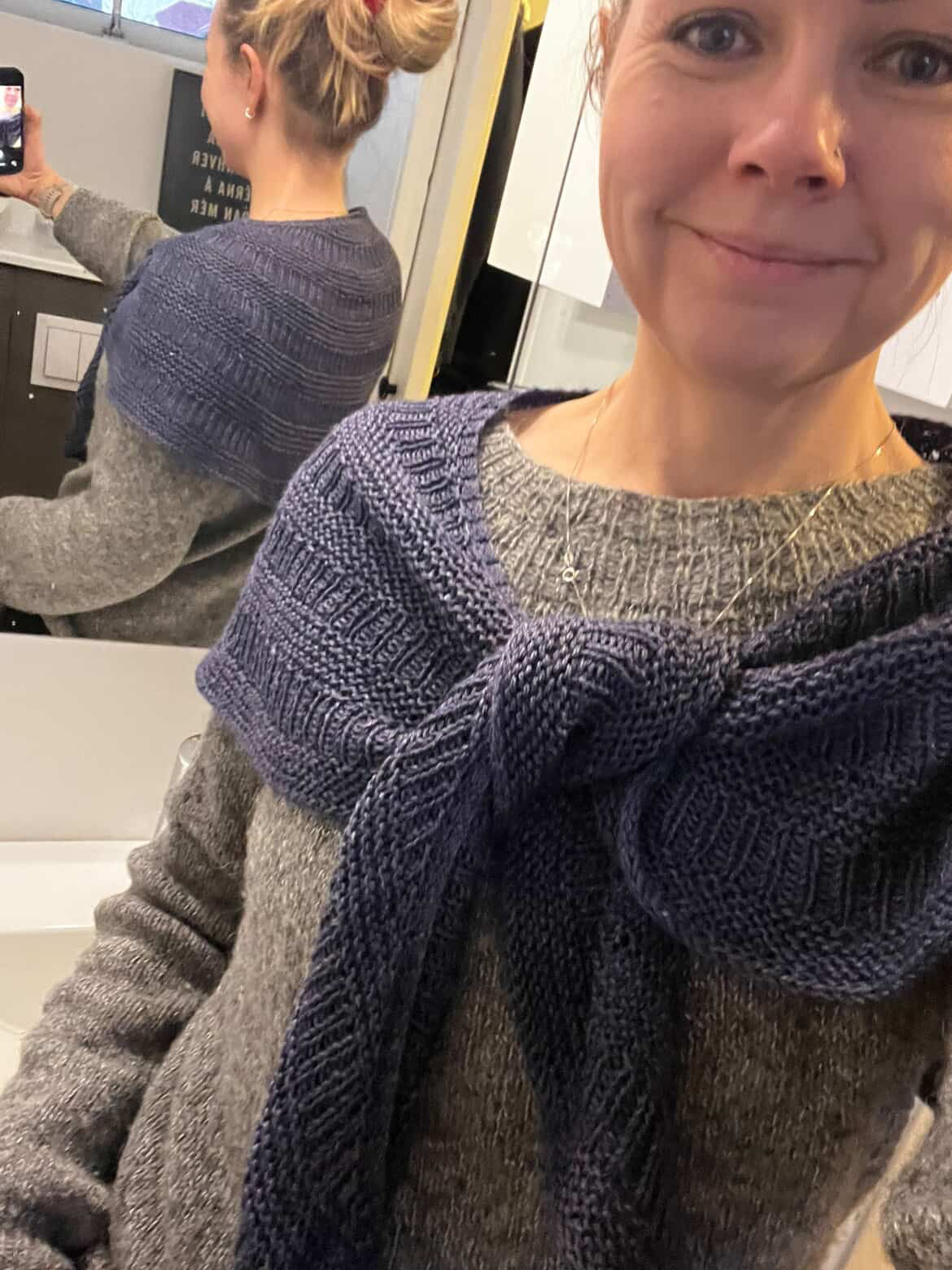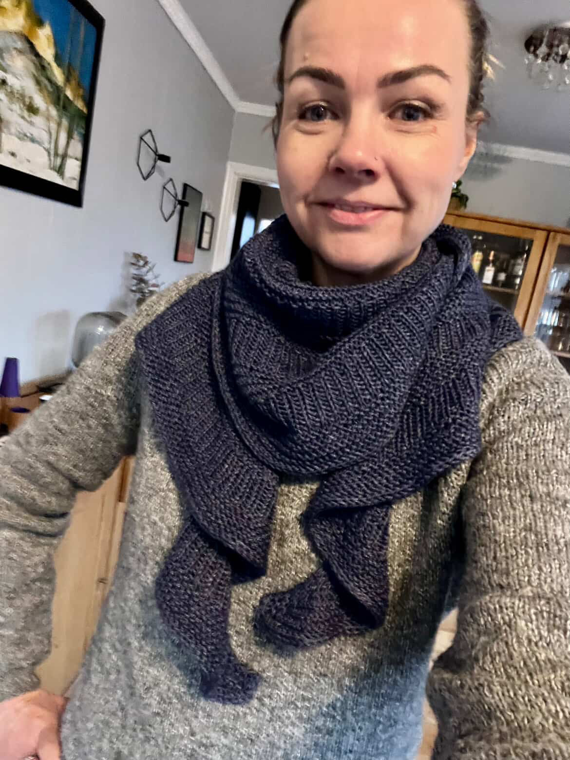 Lykkjufjöldi í sjalinu skiptir akkúrat engu máli, það breytir engu um lögun á sjalinu, ef þið farið nokkurn veginn eftir skrifuðum leiðbeiningum þá ætti allt að vera í lagi 1 – 20 lykkjur til eða frá skipta engu máli þegar sjalið er orðið nokkuð stórt.